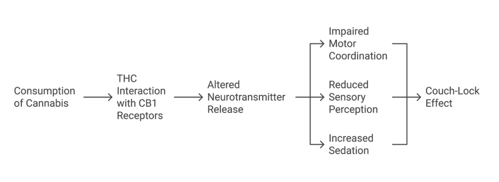 It happens due to the interaction between the receptors in your brain and cannabinoids, such as THC. Other contributors to couch lock are even indica strains and terpenes like myrcene.