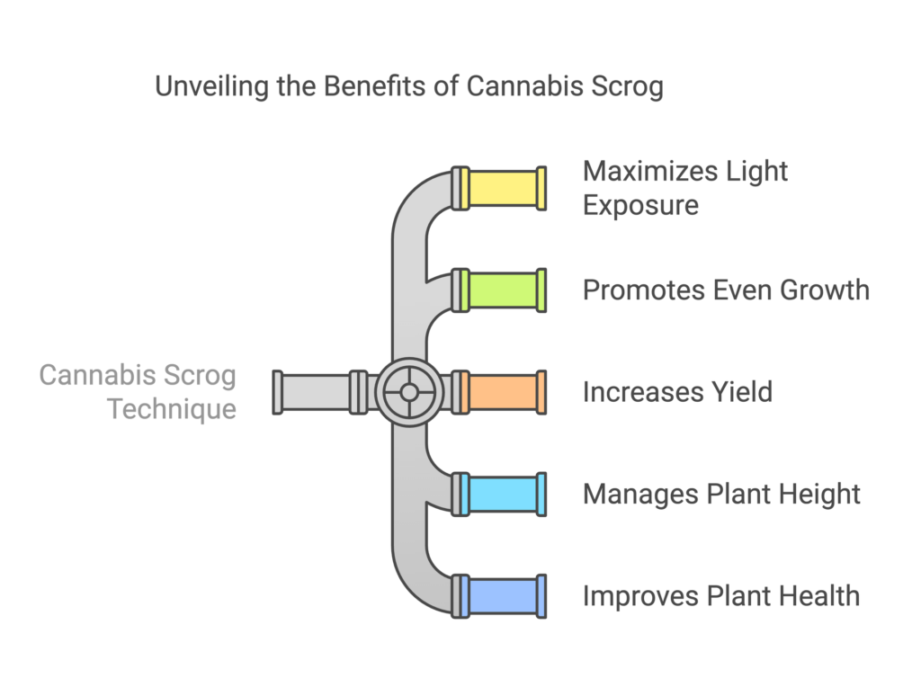 Adopting the SCROG method provides a host of benefits, particularly for growers with space or plant count limitations.