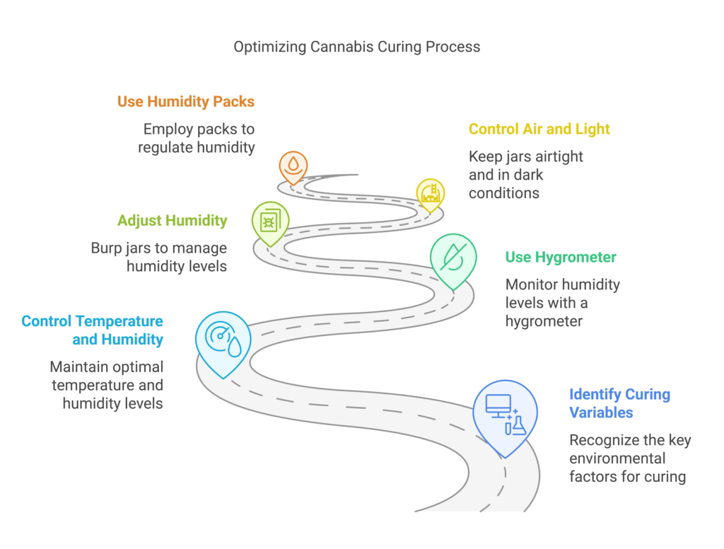 You must carefully control the air, light, temperature, and humidity to get the best results when curing cannabis. In order for your buds to dry correctly and acquire their full taste and fragrance, these variables are essential.