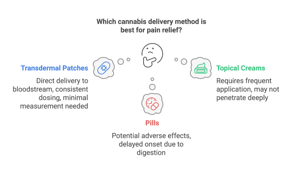 Pills may help, but they may have adverse effects. They also need to be digested, which delays effects. However, transdermal patches deliver cannabis directly to the bloodstream.