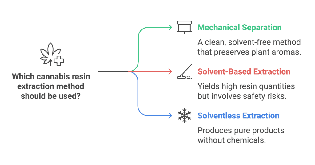 Cannabis resin may be extracted using several ways. Each approach contains procedures and processes that affect product quality and attributes. Three common extraction methods are: